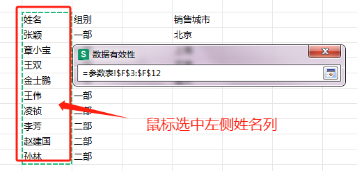 关于“销售城市”所在的下拉效果还可以用其他方法体现,咱们就拿【销售员】列进行数据验证举例吧:在设置之前,先创建一张“参数表”的工作表,如图: