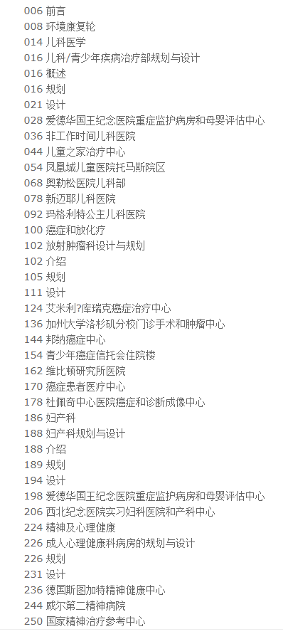 今天下午我们分享《专科医院设计与规划》一书,作者:瑞贝尔 罗伯茨,美国VOA建筑公司总裁及首席运营官,美国建筑师协会成员,多次主持大型医疗建筑设计项目。本书以儿科、妇产科、精神科、肿瘤及放化疗医院为主要设计内容,还有来自国外专业机构的设计建议,图文并茂的为医疗设计者和医院管理者提供了参考。